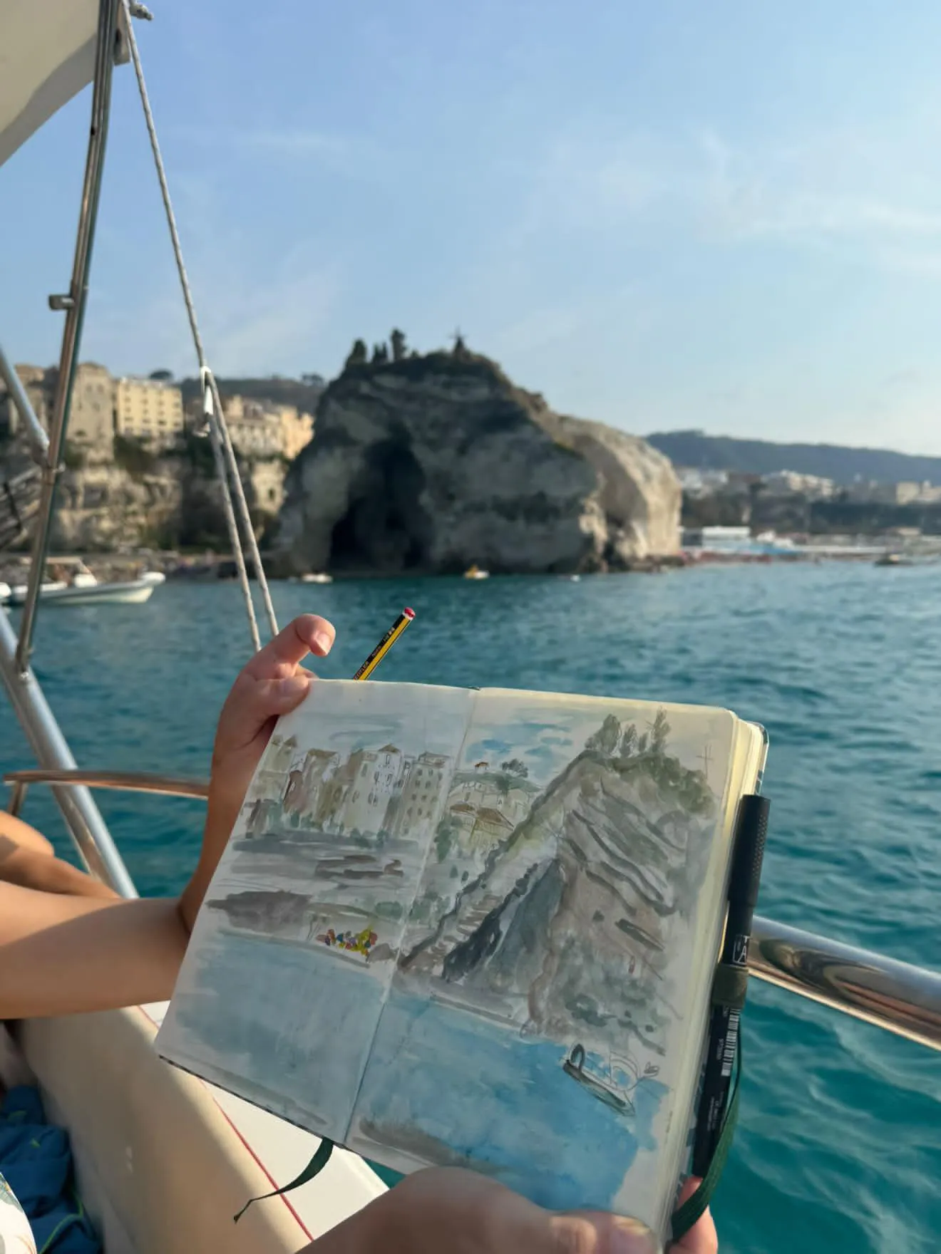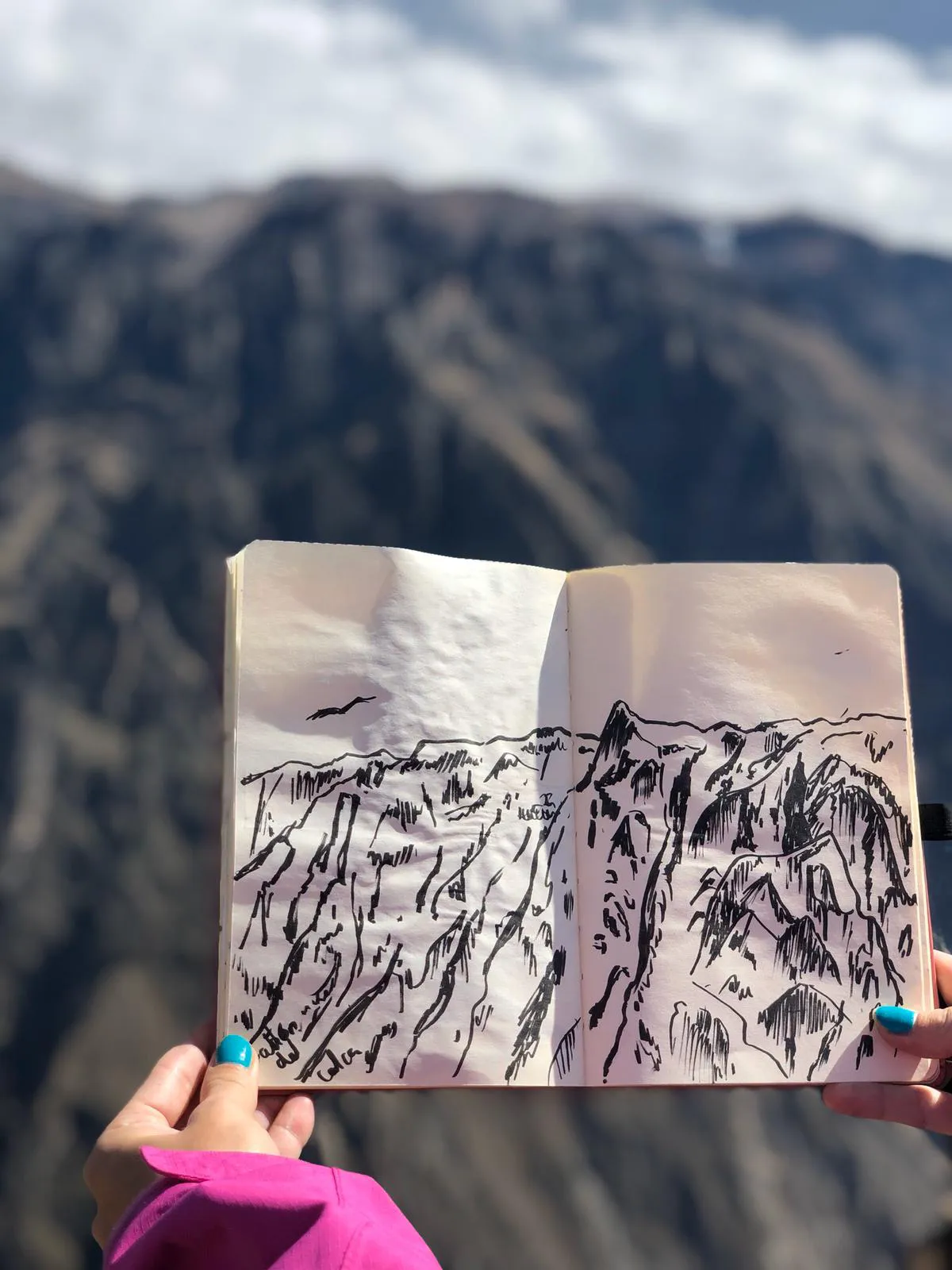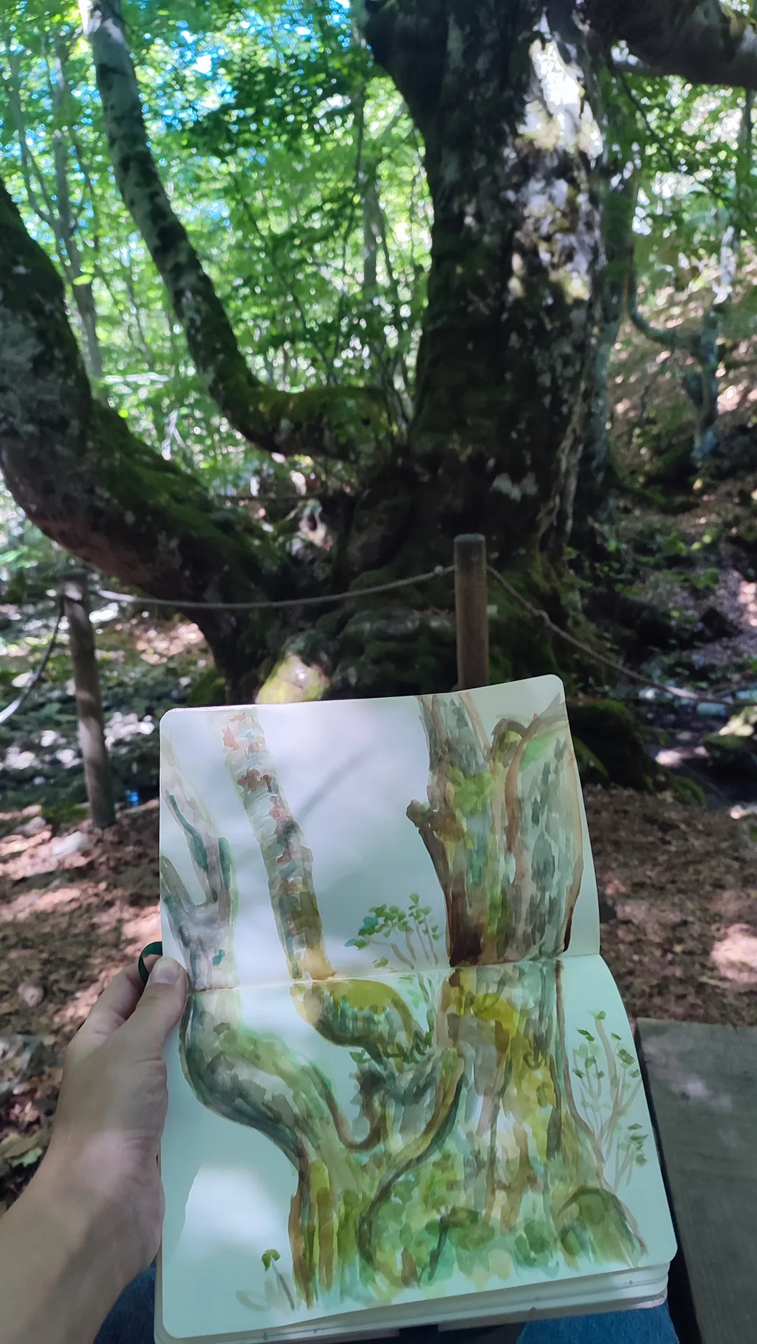 Para mí, el cuaderno y el dibujo al natural es la mejor herramienta de aprendizaje en un viaje, pero también en nuestro día a día, una forma de aprender a mirar, a interiorizar y más tarde a recordar, ya que al contemplarlo te traslada al momento en el que fue creado. Son un recuerdo de lo vivido, de los viajes, los teatros, los conciertos, el café con un ser querido, el paisaje, la montaña, el mar o esa puerta que tanto te gusta cuando pasas por una calle, es el recipiente de tu imaginación y el reflejo de tu mirada, en él aparecen lo que capta tu atención. Pero el mayor de los regalos que aporta el Cuaderno de Bitácora, es el tiempo, el enseñar a pararse en este mundo veloz, enseñar a mirar detenidamente y a contemplar cada rincón de aquello que va a ser plasmado.