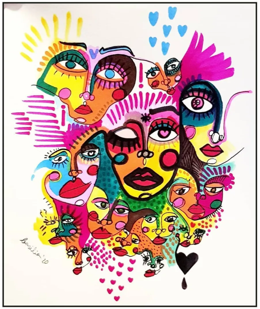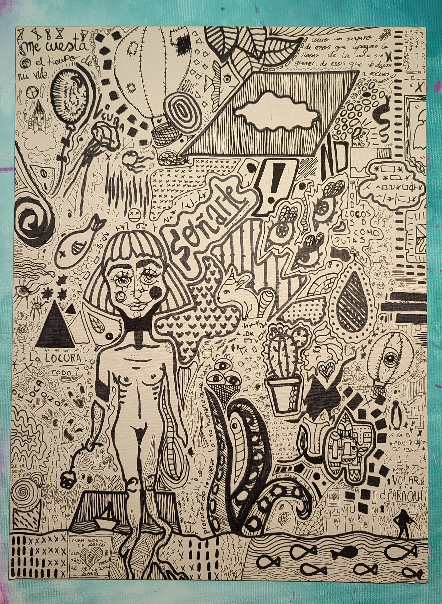 Nacen del sentir, del amor por el arte, de la necesidad creativa, por y para mí, y nuevamente no nacieron como proyecto, pero acabaron en conjunto mostrándose en una exposición en el Hotel Averroes en 2020, y hasta hoy siguen creciendo en número, que del mismo modo que ocurre con las máscaras, beben mucho de la pintura automática.