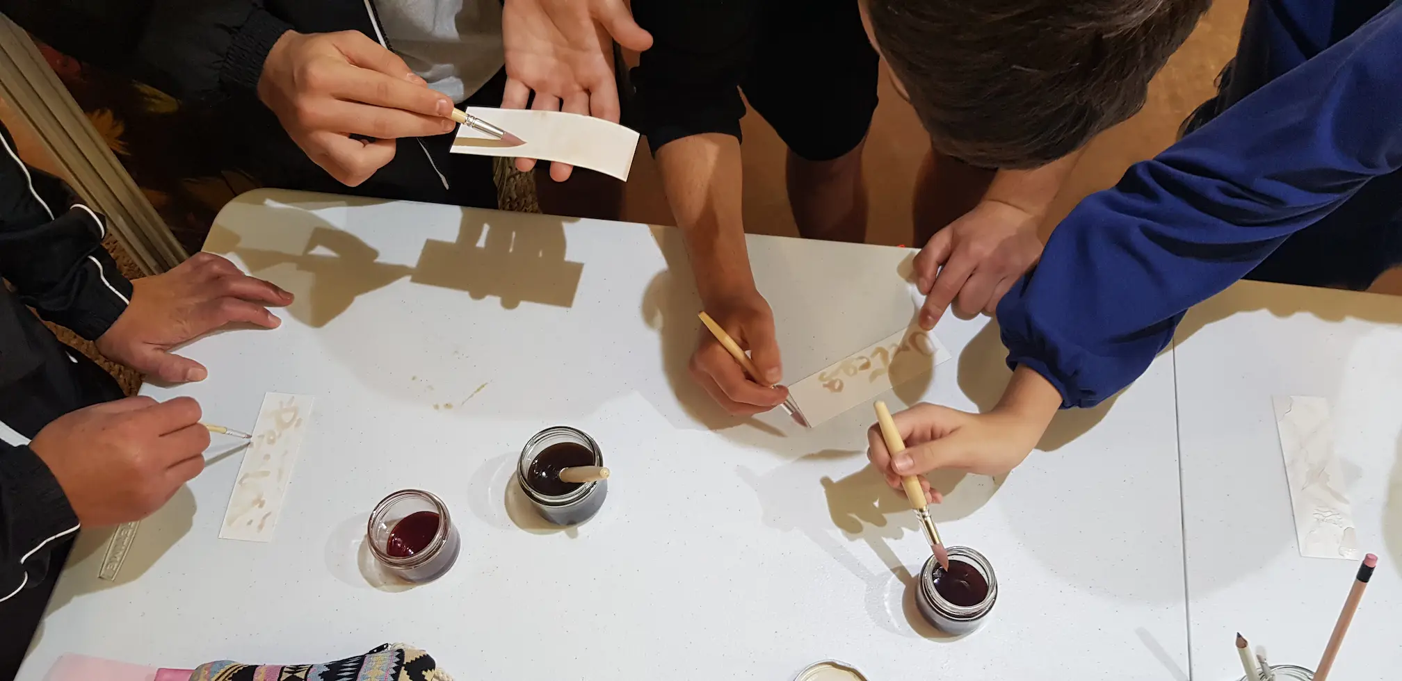 Taller marcapáginas con Vino. Feria de Pueblos, Montemayor, Paxera